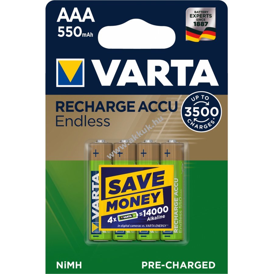 1,2V 550mAh/1,2Wh NiMH 44,5mm x 10,5mm 14 gr. Varta Szavatosság (további részletek)