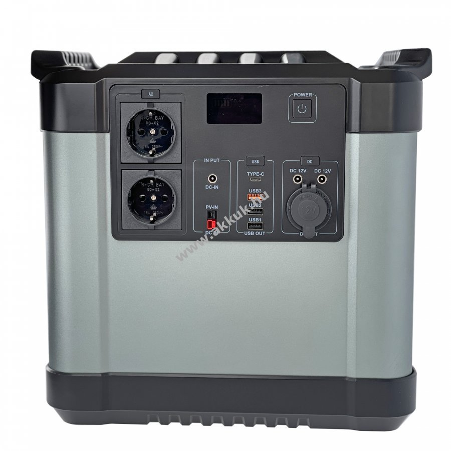 Hordozható Powerstation 1456Wh, 2000W. Független tápegység számos alkalmazáshoz. Túlfeszültség és alulfeszültség védelem, hőmérséklet-ellenőrzés, rövidzárlat védelem. LED kijelző, az aktivált kimenetek és a töltöttségi szint kijelzésével. Kiváló minőségű power bank 3,7V 600000mAh max. 2000W. Működési hőmérséklettartománya: -10 - 60°C. Kimenetek: 2db USB 5V / 2.1A 1db USB QC, 1 x USB-C (5-20V) max. 60W-os teljesítménnyel 2db AC kimenet 100 - 240V tiszta szinusz hullám max. 2000W 1db 12V DC autós kimenet max. 8A, 2db DC5521 12V-os kimenet Bemenetek: 1db DC-IN 25,5V / 8A (5,5 x 2,1 mm-es kerek dugó) 1db napelemes töltőbemenet PV 18 - 30V