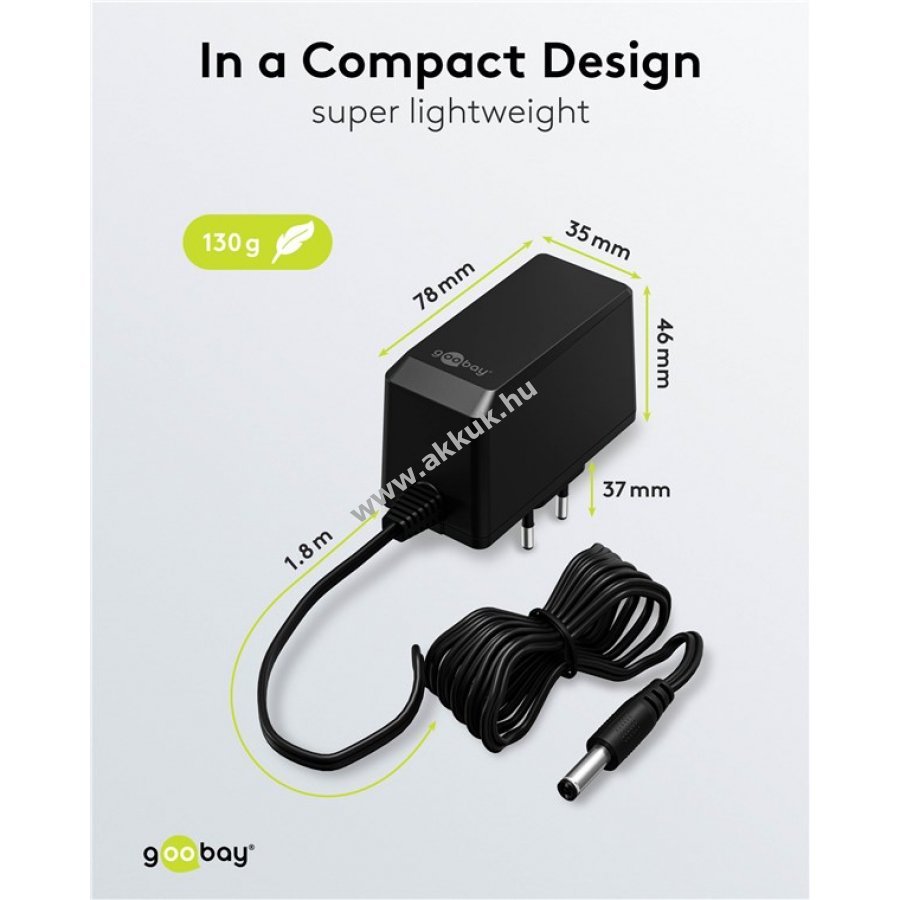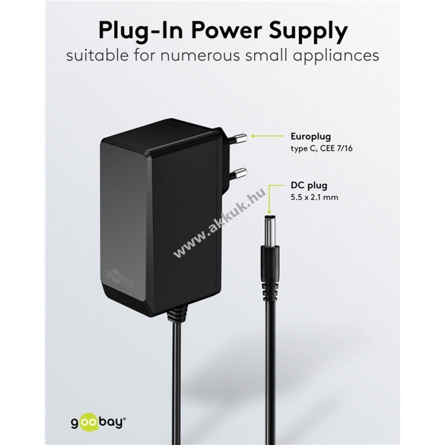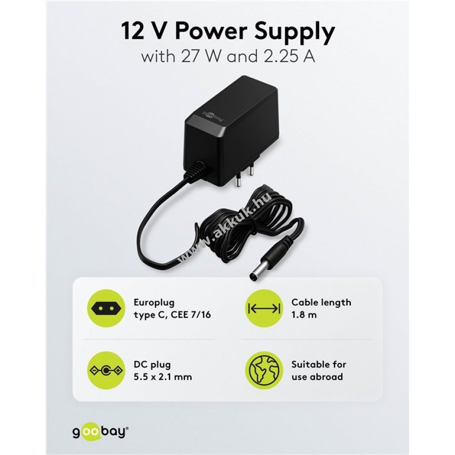 Goobay 12V tápegység 27W 2,25A 5,5mm x 2,1mm DC csatlakozóval - A készlet erejéig!