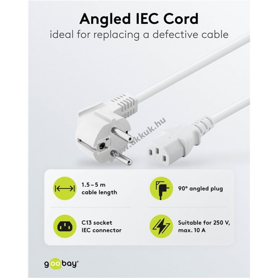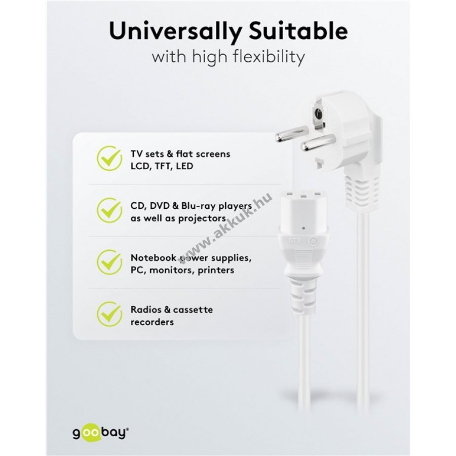 A kábel alkalmas PC, monitor, projektor és más hidegberendezésekhez