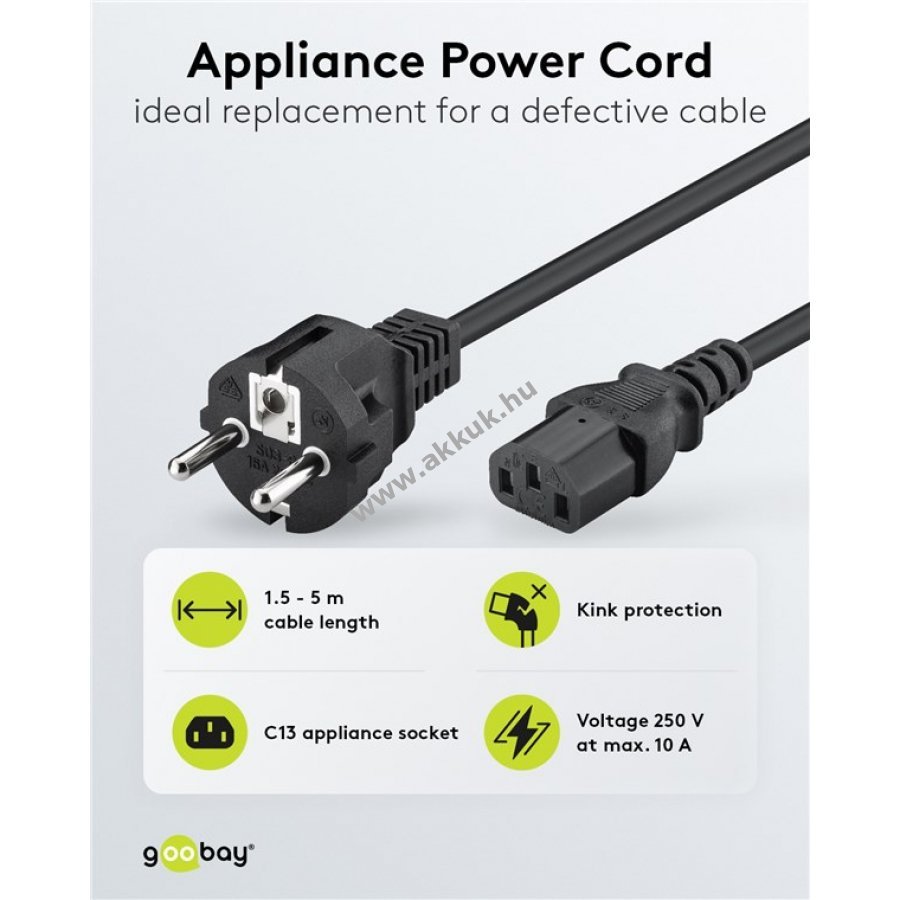 250V (AC) fekete 1.5m Goobay Szavatosság (további részletek) 4040849686054