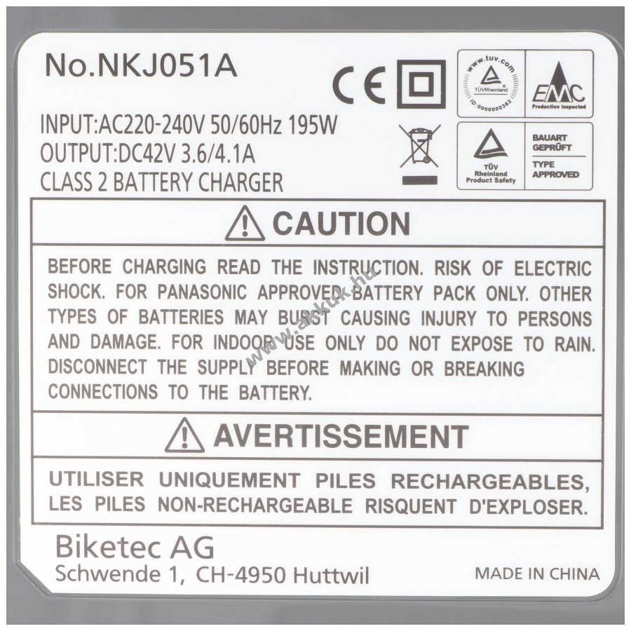 42V 3.6A / 4.1A Li-Ion - Lithium-Ionen 280mm x 100mm x 130mm 1362 gr. Panasonic 2 év jótállás (további részletek)