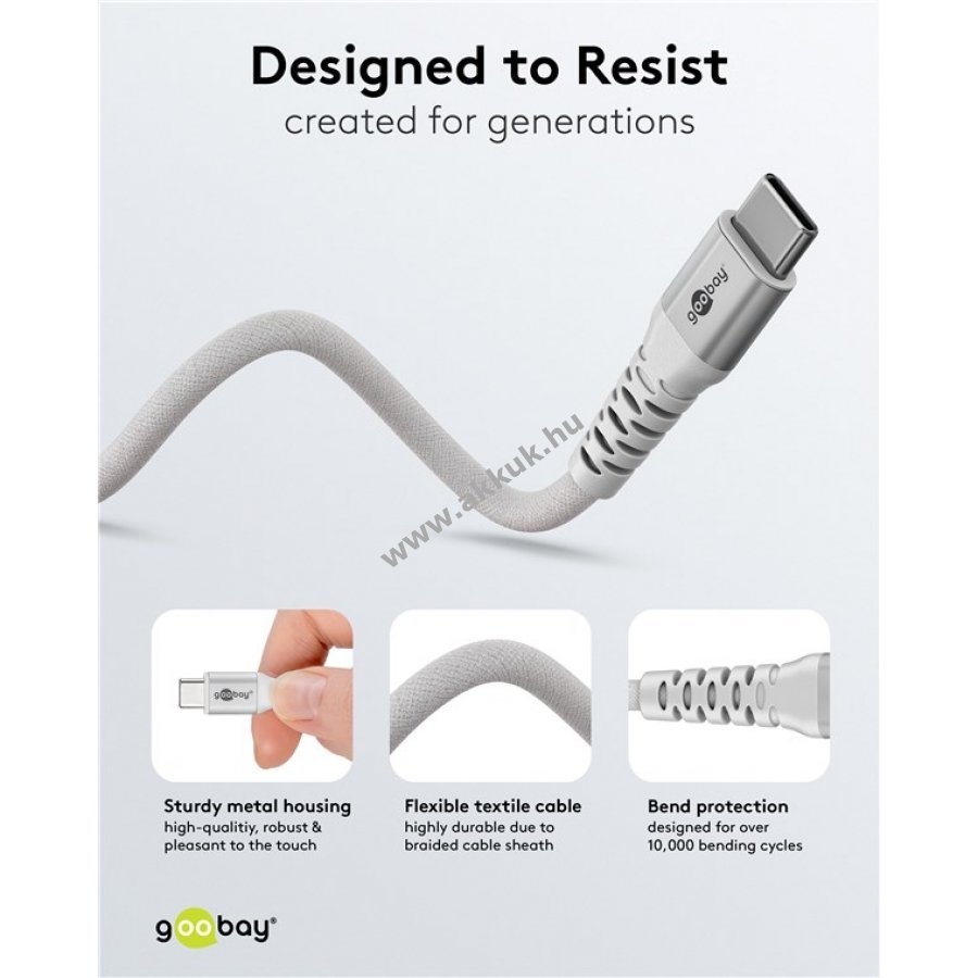 60W USB-C fehér 3m 65 gr. Goobay Szavatosság (további részletek) 4040849701955