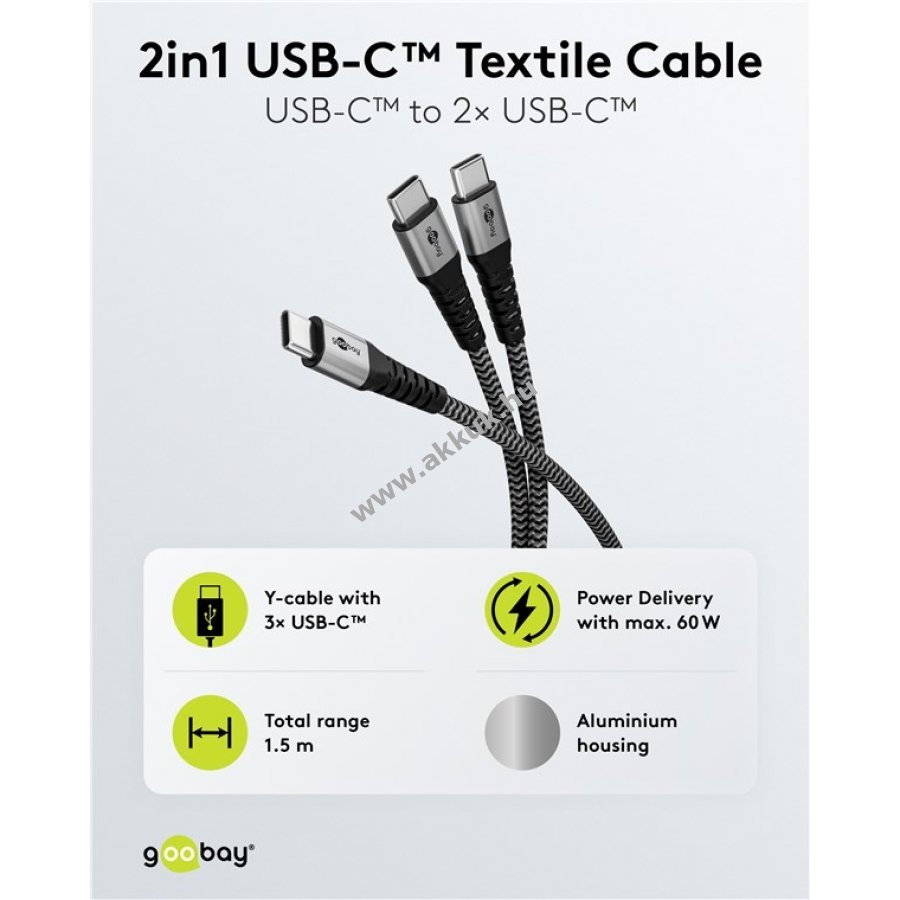 A kábel Y elágazásának köszönhetően egyszerre két USB-C készülék tölthető, például okostelefon, tablet, laptop, Bluetooth fejhallgató vagy okosóra.