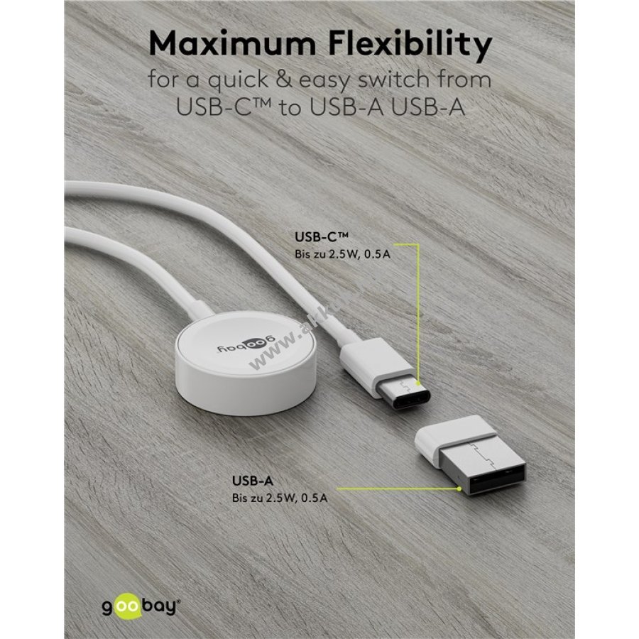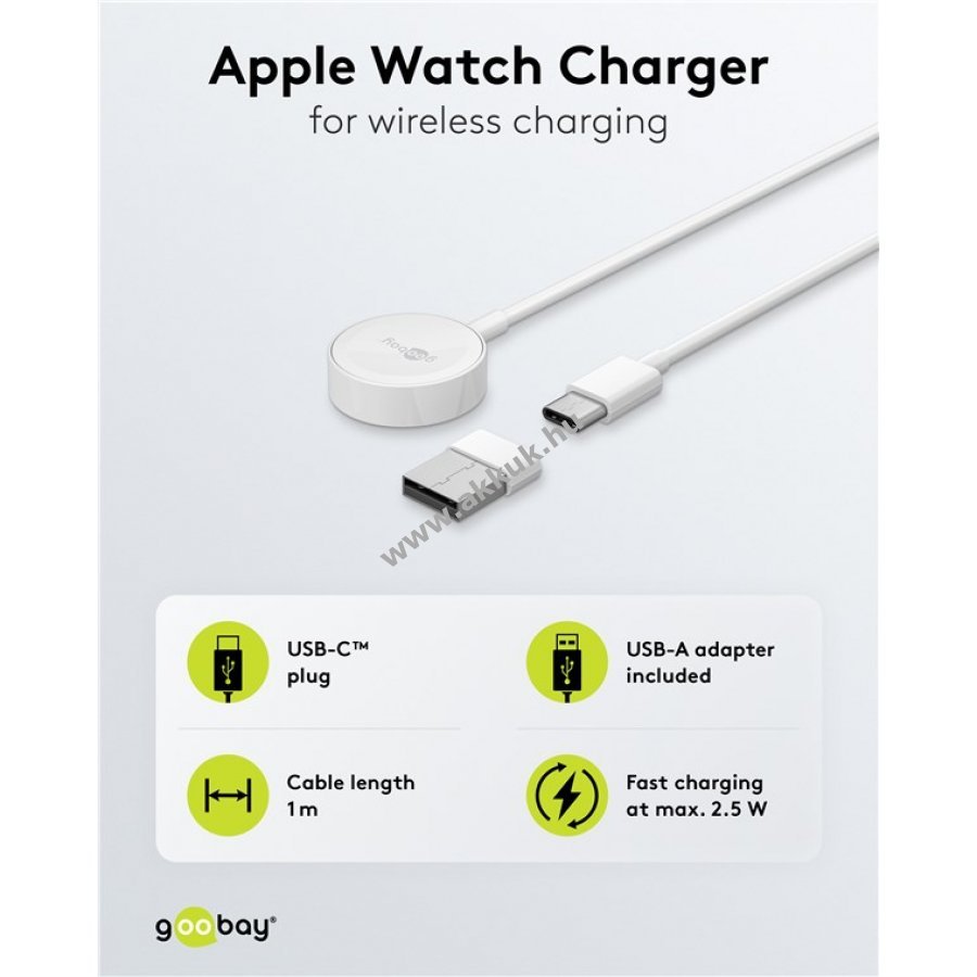 Kompakt és elegáns kialakítású mágneses töltőkábel Apple Watch okosórákhoz az 2. szériától kezdve.