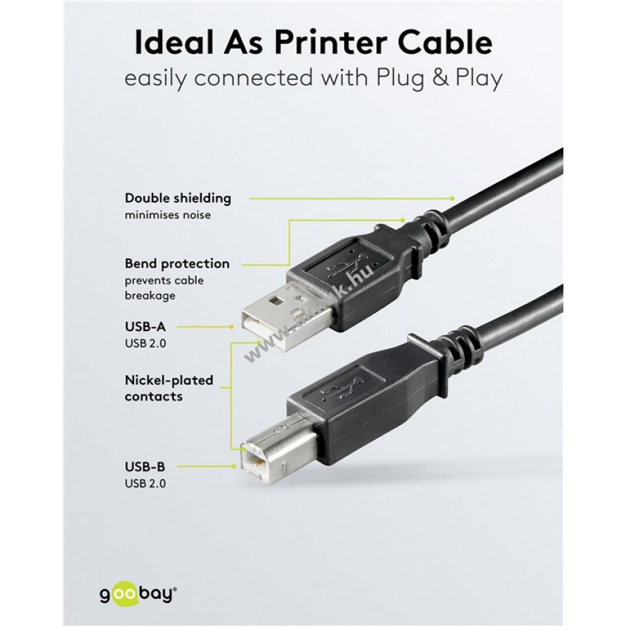 Adatkábel laptop vagy PC USB-A kimenet csatlakoztatásához USB-B eszközökhöz, például nyomtató, szkenner, fax vagy külső merevlemezhez
