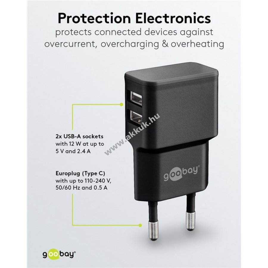 5V 2.4A fekete 74 x 38 x 23 mm 36 gr. Goobay Szavatosság (további részletek) 4040849449512