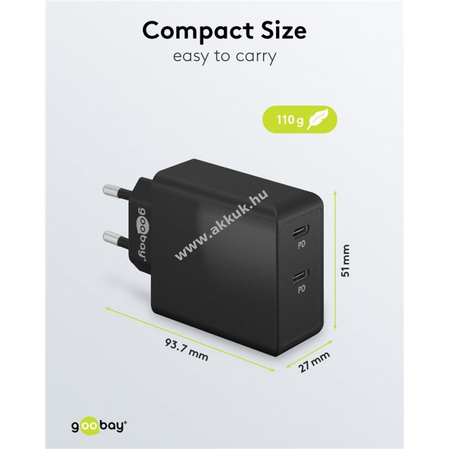 Goobay USB-C PD 36W gyorstöltő 2x USB-C csatlakozó fekete