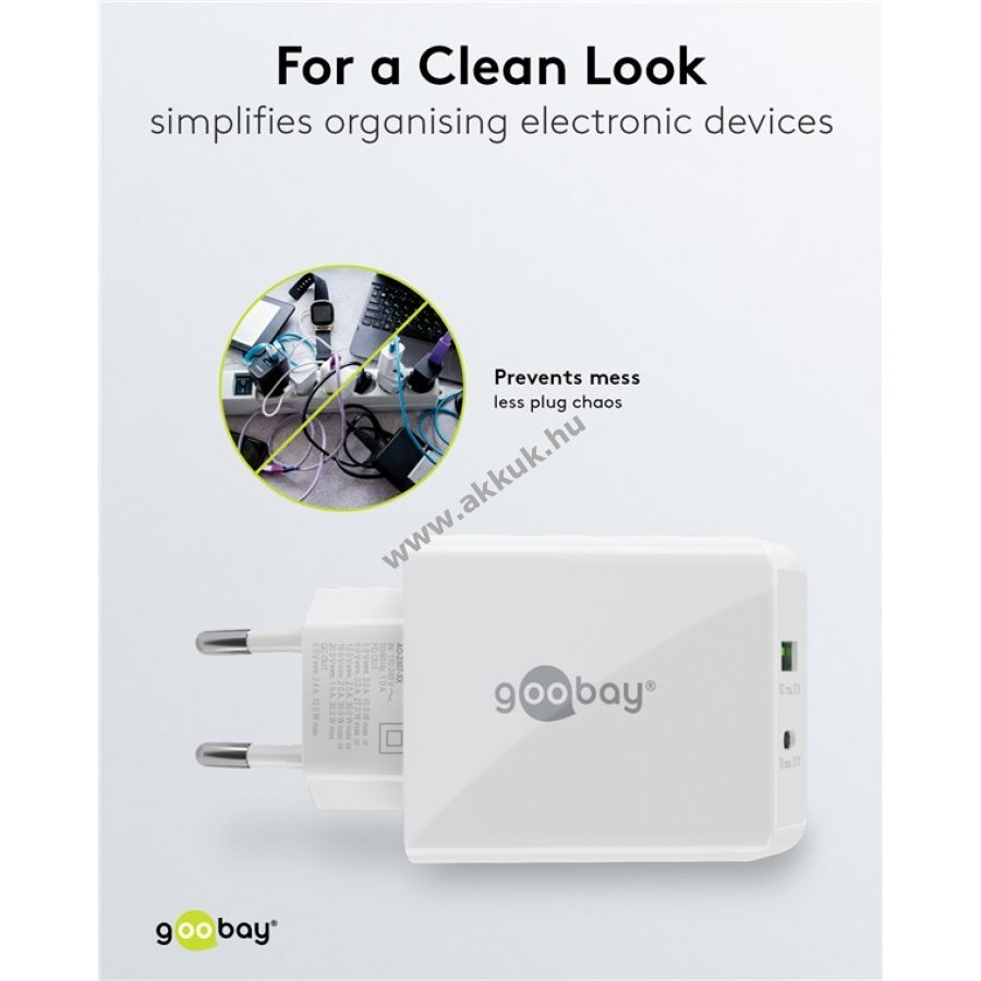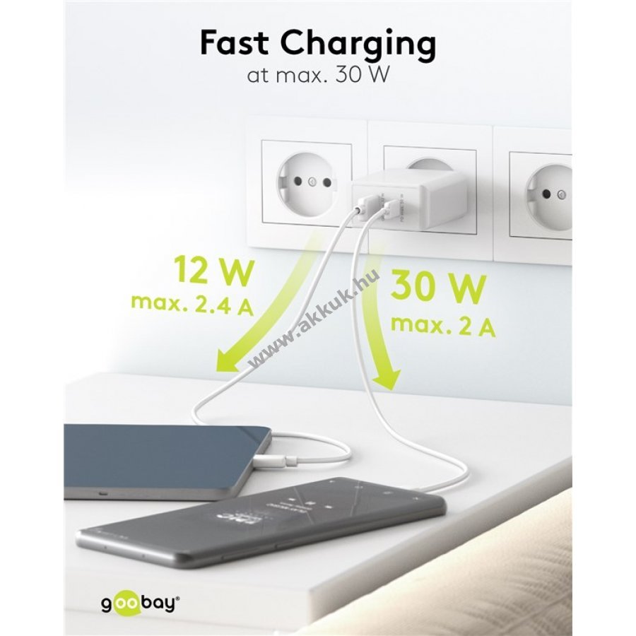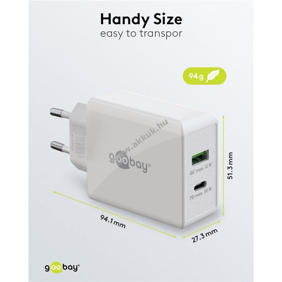 Kis méretű töltő otthoni és utazási használatra gyors és megbízható töltést biztosít okostelefonoknak és táblagépeknek 30 W teljesítmény ideális kisebb eszközökhöz mint okostelefonok Bluetooth fejhallgatók táblagépek vagy powerbankok Power Delivery technológia biztonságos és dinamikus töltést nyújt az eszköz optimális teljesítményének meghatározásával Kompakt kialakítás minden táskában elfér így ideális utazáshoz Kétféle USB port csökkenti a töltők számát kevesebb káosz és könnyebb csomagolás Univerzális USB-C csatlakozó hosszú távú kompatibilitás Apple iPhone Samsung Xiaomi LG Huawei okostelefonokkal és Apple iPad Samsung Galaxy táblagépekkel Kompatibilis védelem túláram túltöltés és túlmelegedés ellen