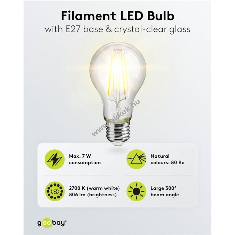 7W/806lm átlátszó E27mm 50 gr. Goobay Szavatosság (további részletek) 4040849653964