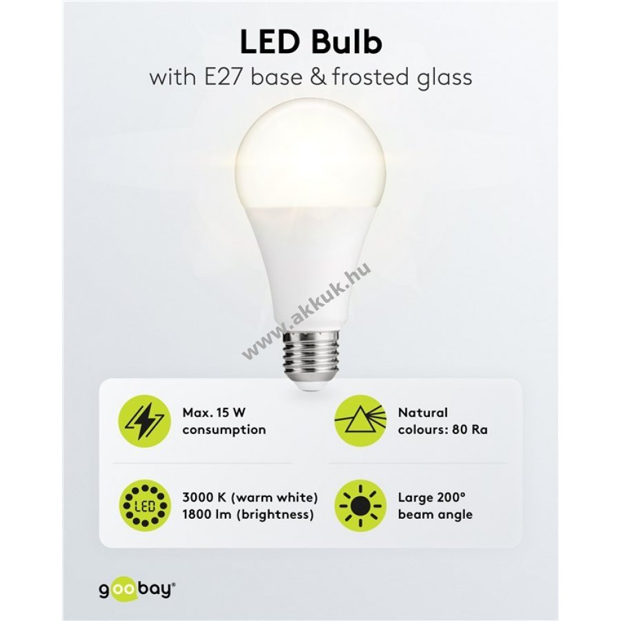 LED lámpa 200°-os fénykibocsátási szöggel és E27 foglalattal melegfehér 3000 K fényerővel mint a hagyományos izzók energiatakarékos helyettesítője alkalmas halogén és hagyományos izzók helyett 80 Ra színvisszaadási index természetes és torzításmentes színvisszaadás alacsony hőfejlődés azonnali teljes fényerő indításkor matt burkolat hosszú élettartam