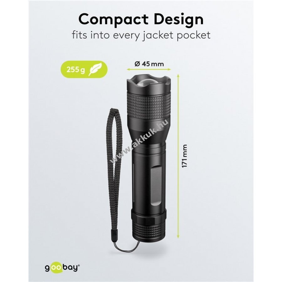 1.5V 1500lm fekete 171mm x 45mm 255 gr. Goobay 1 év jótállás (további részletek) 4040849445590