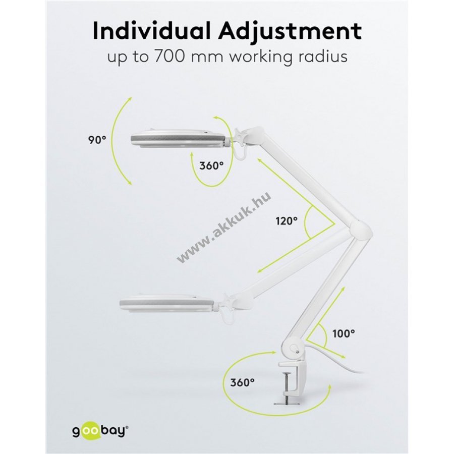 A nagyítófej 90°-ban dönthető és 360°-ban forgatható
