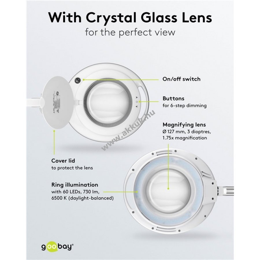 A nagyítólámpa fényereje érintőpanelről 80 lm és 730 lm között 6 fokozatban állítható