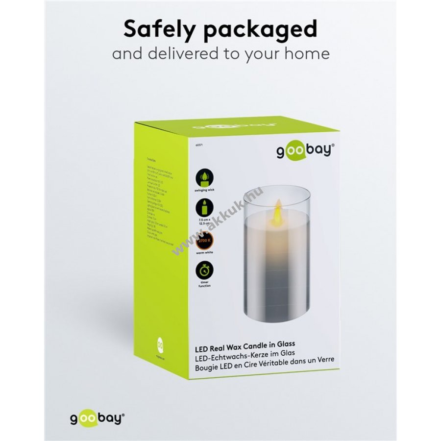 Goobay LED valódi viasz gyertya üvegben 7,5x12,5cm szürke átlátszó időzítővel