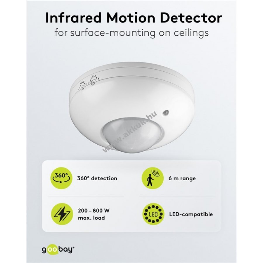 360°-os érzékelési szögével mennyezeti felületre szerelhető.