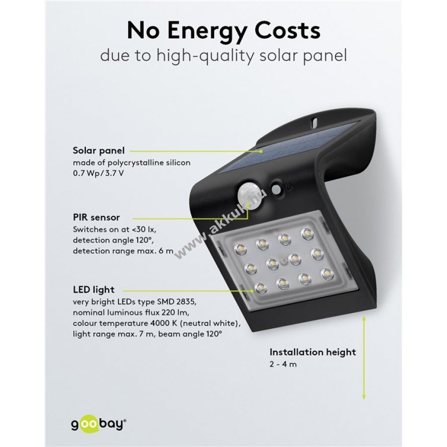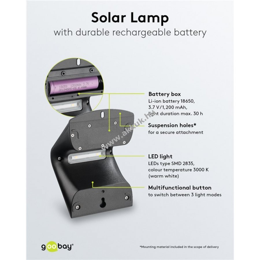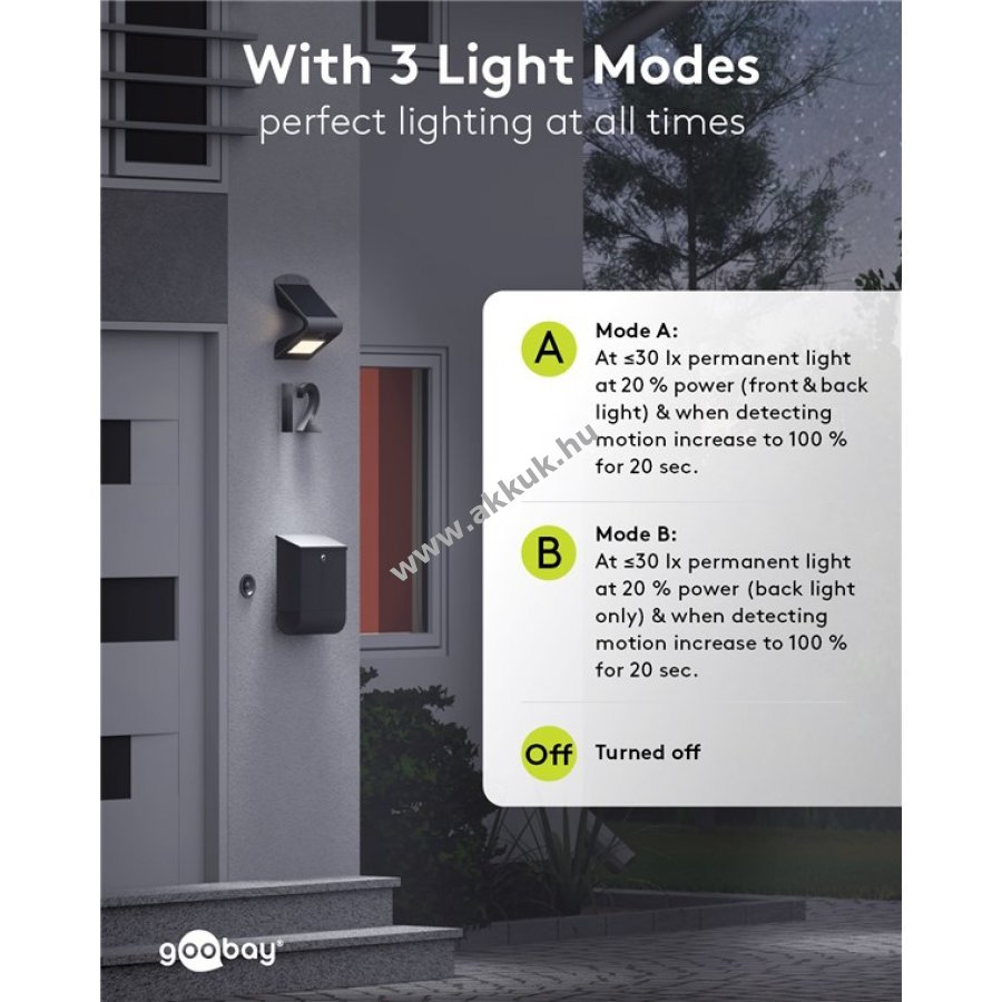 A Goobay LED napelemes kültéri lámpa energiatakarékos és hosszú élettartamú megoldás házbejáratok, kocsibeállók és lépcsők megvilágítására.