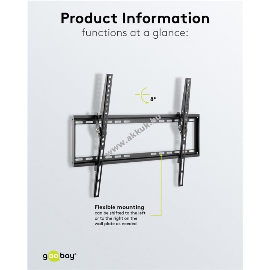 Kiváló választás fix nézési szögű televíziókhoz stabil fali rögzítéshez. Extra lapos kivitel 20,5 mm mélységgel ultravékony TV-khez. 8°-os döntési lehetőség kényelmes felső pozícióhoz.