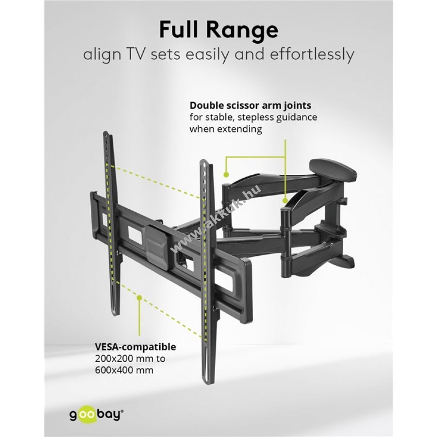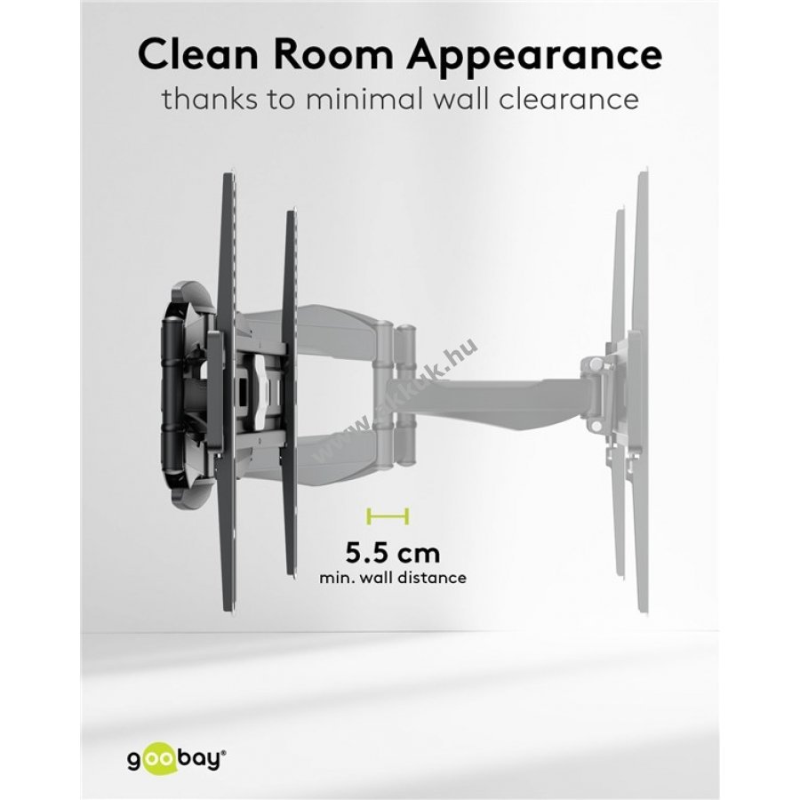 Teljes mozgásszabadság a tökéletes nézőszögért. A rugalmas fali tartó minden látási szokáshoz alkalmazkodik és minden szögből megfelelő pozíciót biztosít.