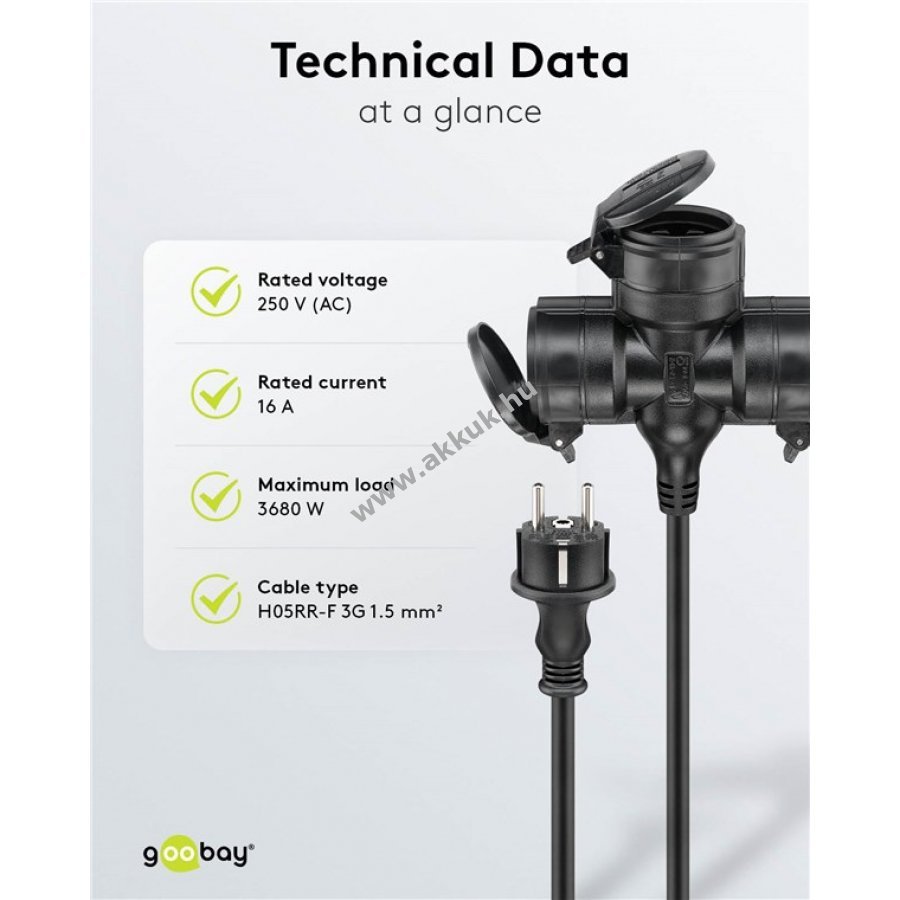 250V (AC) fekete 10m Goobay 1 év jótállás (további részletek) 4040849654381