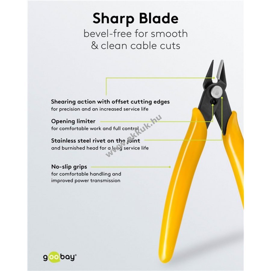 Éles és pontos vágás a precízen kialakított pengéknek és hegyes formának köszönhetően még nehezen hozzáférhető helyeken is tiszta kábelvágást biztosít