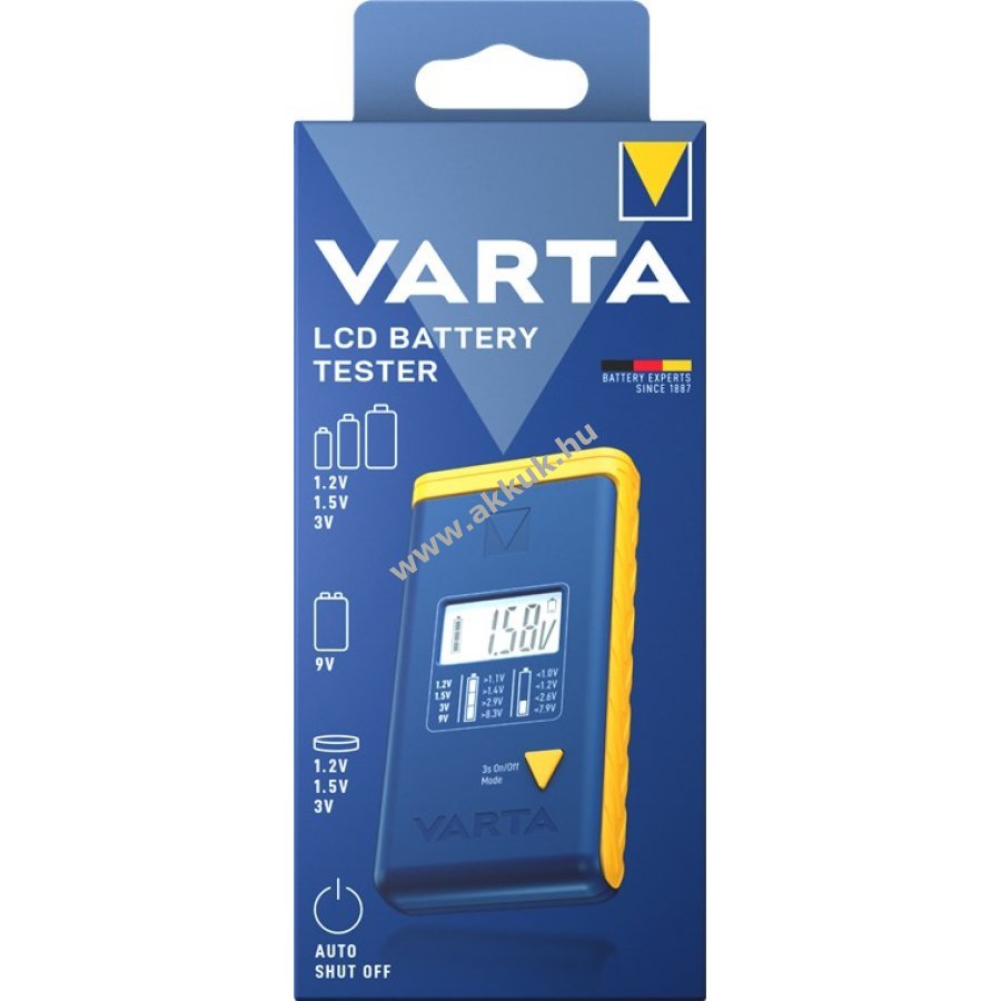 Kompakt és pontos elemteszter Varta LCD kijelzővel a különböző elemek és akkumulátorok állapotának gyors ellenőrzésére.