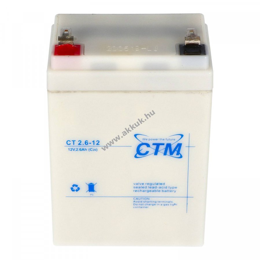 12V 2400mAh/31.2Wh SLA fekete 70mm x 48mm x 97mm 823 gr. CTM Szavatosság (további részletek)