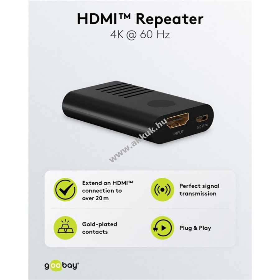 A HDMI-jelerősítő gyenge HDMI-jelek szintjét növeli 4K 60Hz esetén akár 20 m távolságig és 4K 30Hz esetén több mint 25 m-ig. Biztosítja a tiszta kép- és hangátvitelt hosszú kábelhossz esetén is és hatékonyan megelőzi a jelzavarokat vagy zajt.
