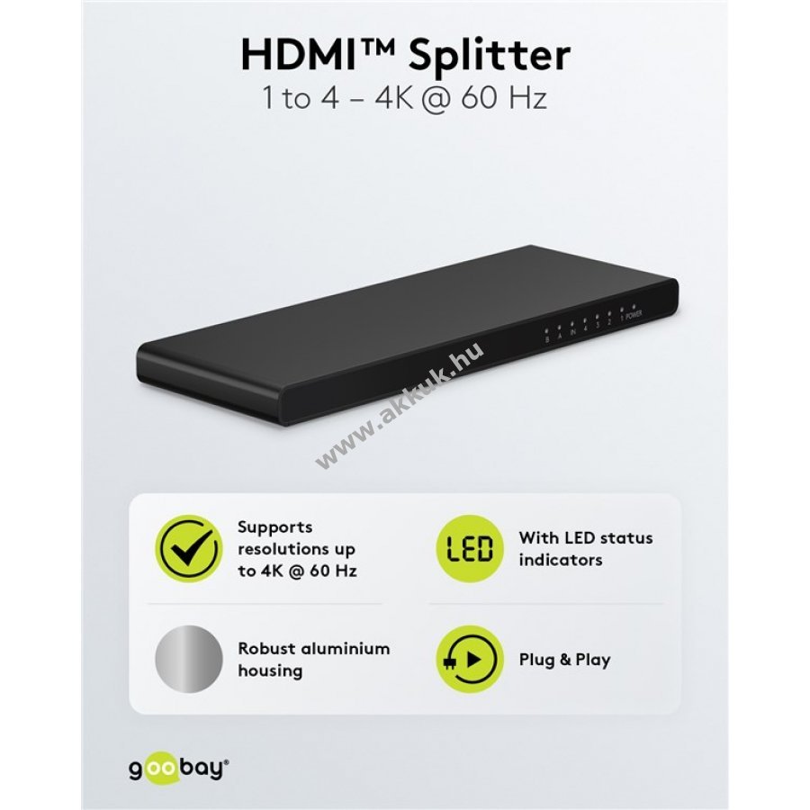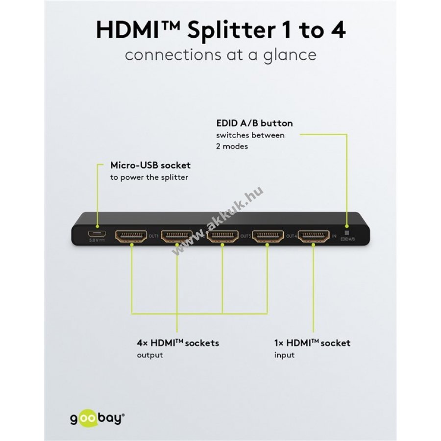 HDMI-splitter, amely 1 HDMI bemeneti jelet akár 4 HDMI kimenetre másol televízióhoz monitorhoz vagy projektorhoz