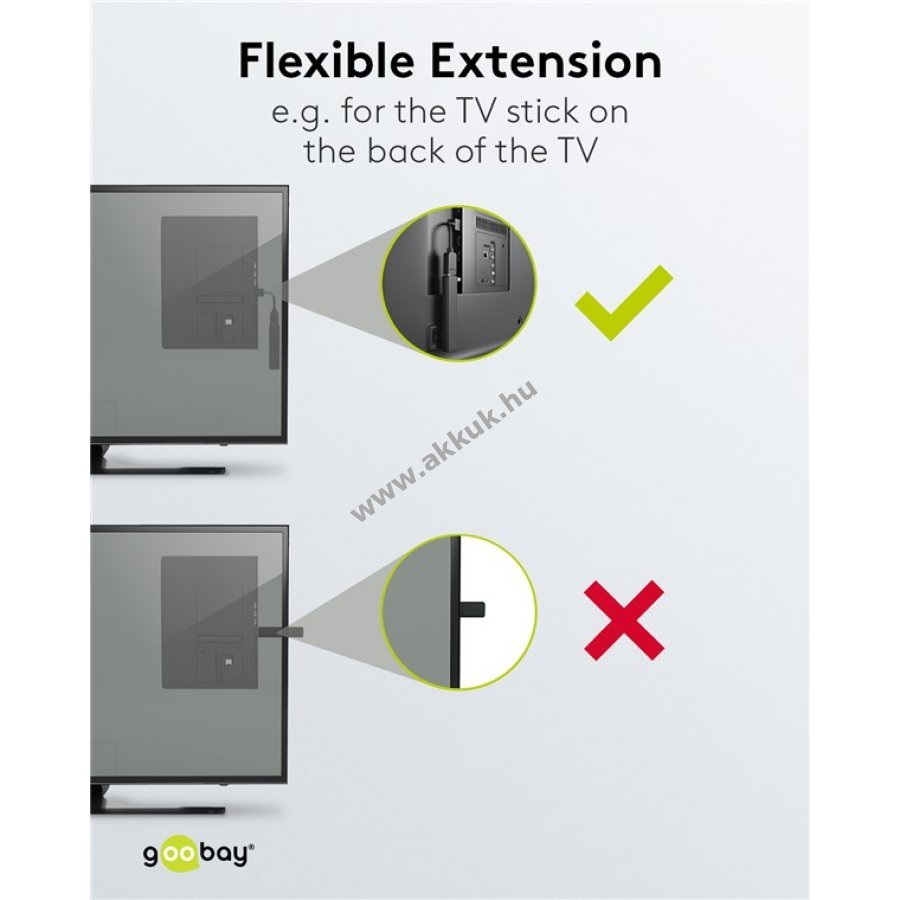 A rövid, hajlékony hosszabbító ideális például TV hátoldali csatlakozókhoz.