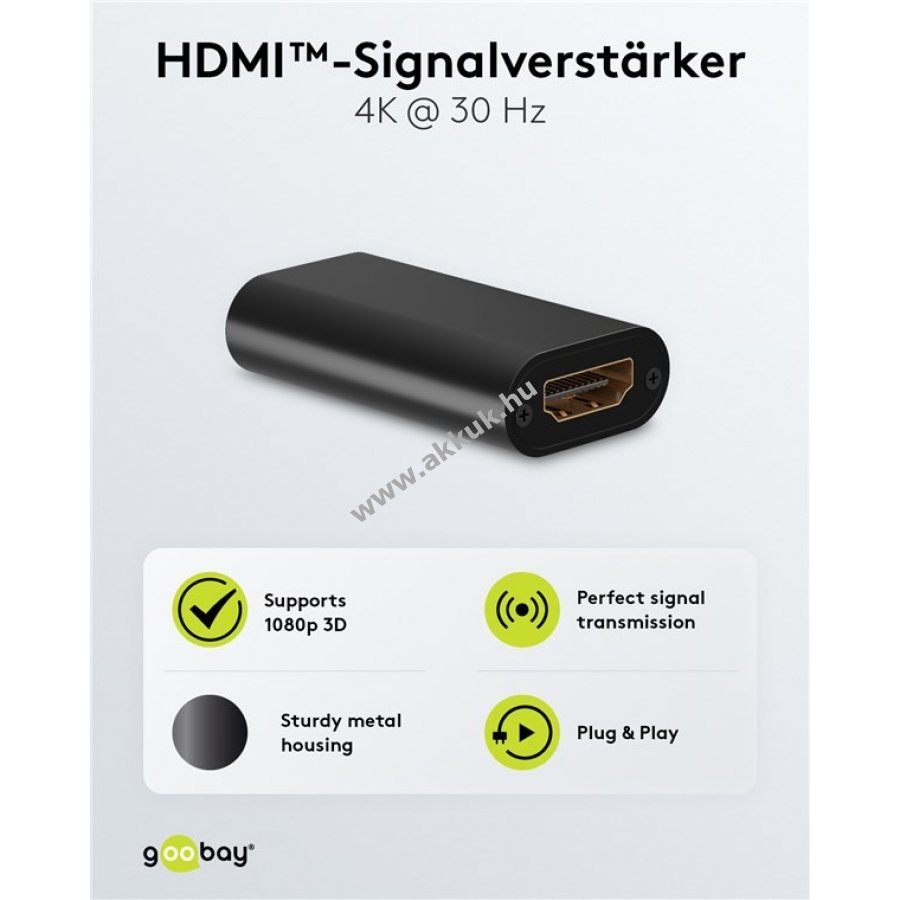 A HDMI-jelerősítő gyenge HDMI-jelek szintjét növeli 4K 30Hz felbontás mellett akár 30 m távolságig és támogatja a 1080p 3D jelet 40 m-ig. Kiváló kép- és hangminőséget biztosít hosszú kábelezés esetén és hatékonyan csökkenti a jelzavarokat vagy zajt.