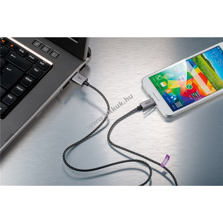 Rugalmas USB 2.0 kábel textilborítással és fém Micro-USB csatlakozókkal amely számos Android és Windows eszközhöz alkalmas. Gyors adatátvitelt biztosít akár 480 Mbit/s sebességgel és egyszerre tölti az akkumulátort. 0,3 m hosszúsága rendezetten tartja a kábeleket és megelőzi a gubancolódást.