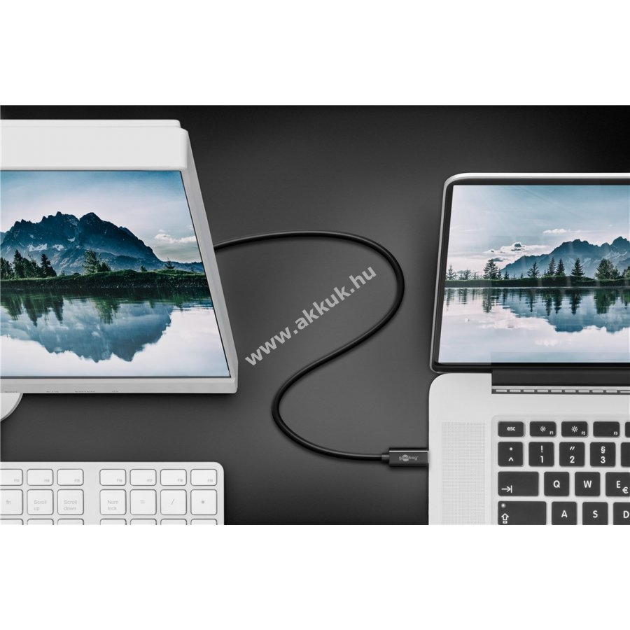 UHD videójel átvitel Mac vagy PC készülékről monitorra vagy projektorra. Egyszerű külső kijelző csatlakoztatás plug & play módon. DisplayPort csatlakozó zár megakadályozza a laza érintkezést. USB-C csatlakozó mindkét oldalon használható. Támogatja a 4K x 2K felbontást 60 Hz-en.