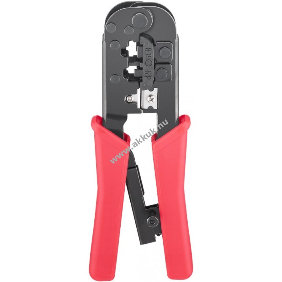 Crimpfogó árnyékolt és árnyékolatlan RJ45 hálózati kábelekhez és RJ11 vagy RJ12 telefonkábelekhez.