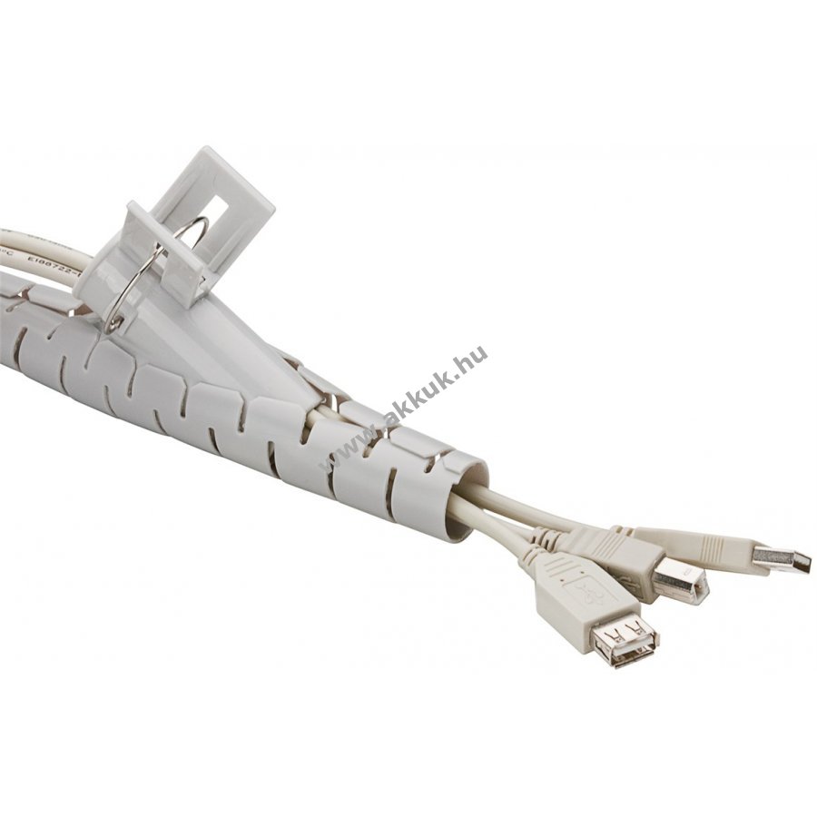 Tartós műanyag spirálcső kábelek rendezéséhez 20 mm átmérővel. 2,5 m hosszúságú kábelrendező igény szerint méretre vágható. A csomag tartalmaz bevezető segédet a kábelek könnyebb elhelyezéséhez. Megakadályozza a kábelek összegubancolódását és sérülését például háziállatok által a padlón vagy íróasztalon.