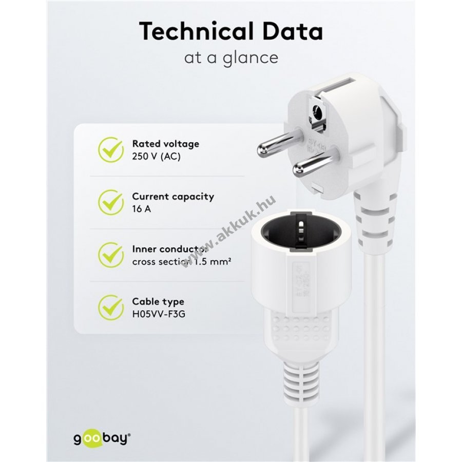 250V (AC) fehér 3m Goobay Szavatosság (további részletek) 4040849930874