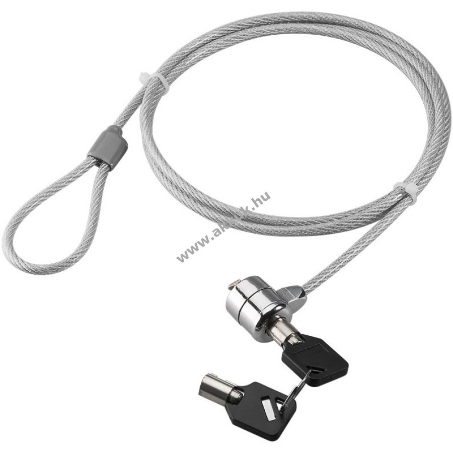 Hatékony védelem laptopok és PC-k lopás ellen nyilvános helyeken. 1,5 m hosszú műanyag bevonatú acélkábel könnyen rögzíthető asztallábhoz. T alakú zárócsap kompatibilis szabványos biztonsági nyílással rendelkező eszközökkel. Gyors zárás kulccsal amely csak a tulajdonos által nyitható. Robusztus és megbízható kivitel.