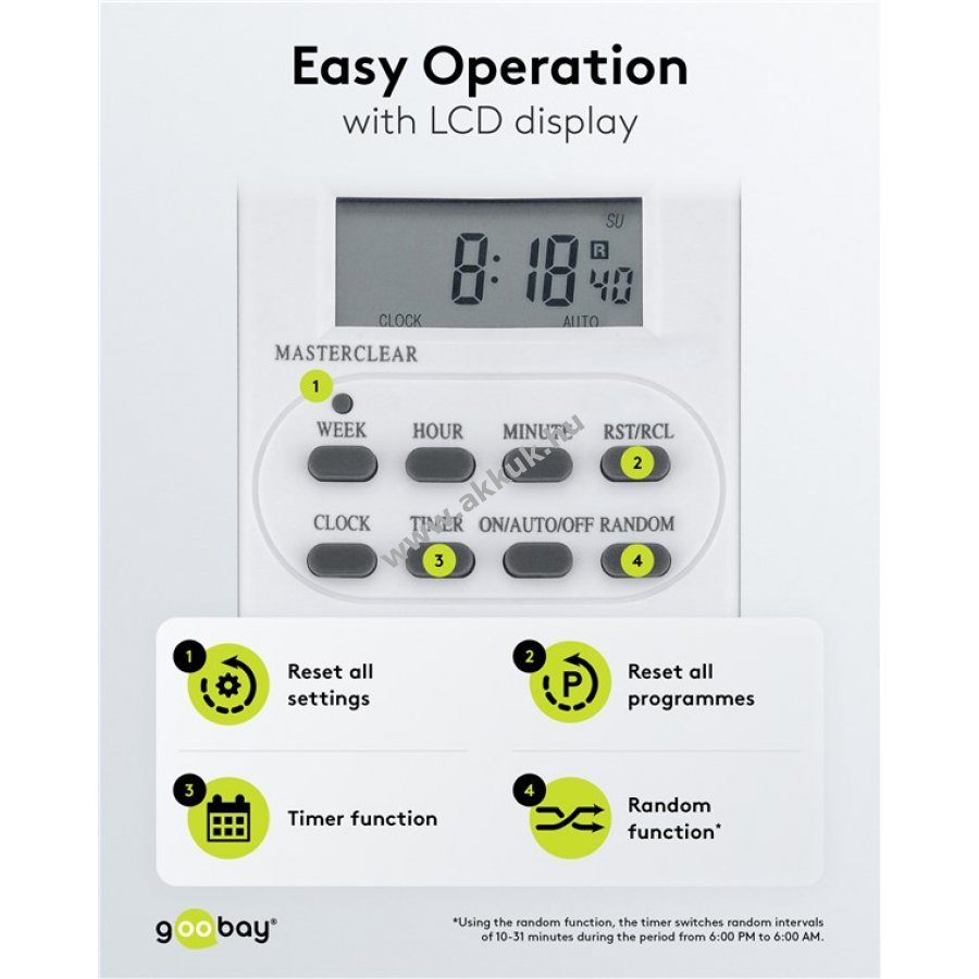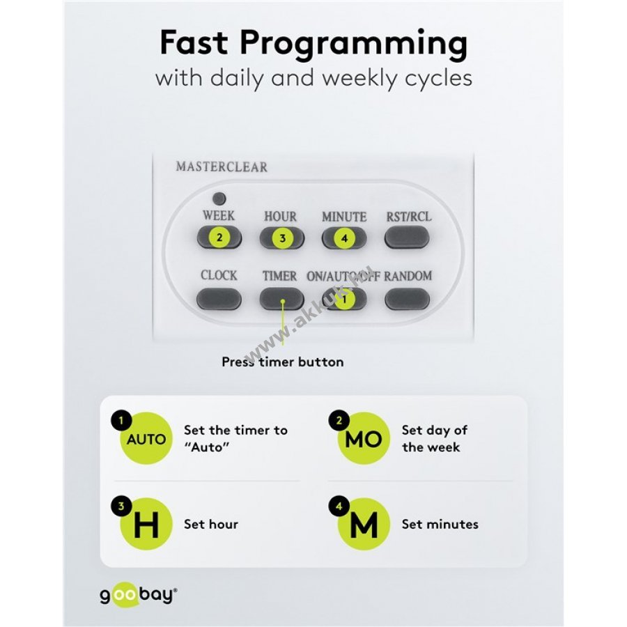 Goobay digitális időkapcsoló programozható 10 kapcsolási programmal