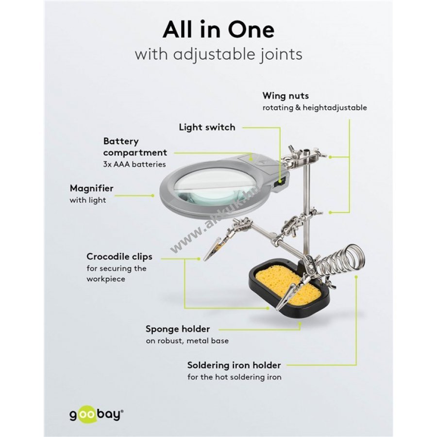 Ideális forrasztási segédeszköz elektronikai alkatrészekhez, modellépítéshez, kézművességhez és ékszerjavításhoz.