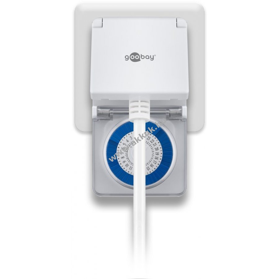 Az IP44 védettségű analóg időkapcsoló kültéri és párás helyiségekben használható konnektoros időzítő. Egyszerűen beállítható akár 48 időpont naponta 30 perces lépésekben. Mechanikus működésű és fröccsenő víz ellen védett.