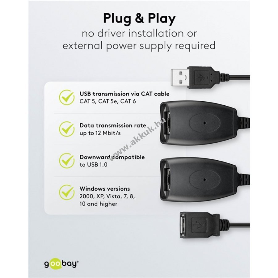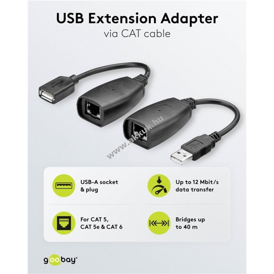 USB-CAT extender adatátviteli sebessége 12 MBit/s USB 1.1 kompatibilis USB 1.0-val